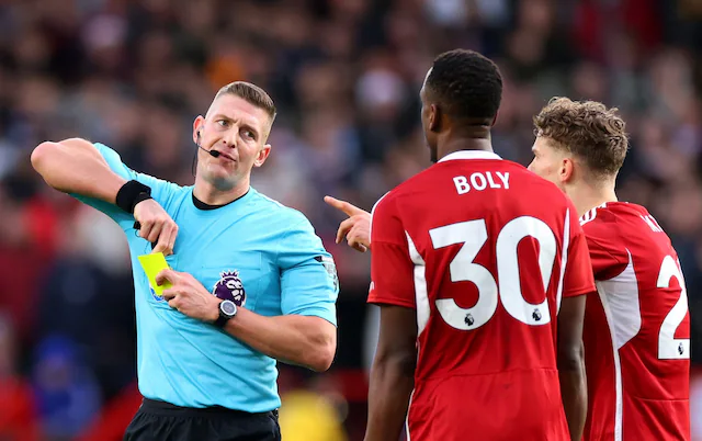 It’s Forest vs Bournemouth, 23 December 2023. The referee is Rob Jones, who with breathtaking incompetence sends off our defender Willy Boly after 23 minutes. Even at the distance I was sat, 70 metres away, I could see that Boly had won the ball. I even remember excitedly exclaiming ‘great tackle!’, only to see the inept Jones give Boly his second yellow. Replays will show not only did Boly win the ball, he was also fouled in the process – a possible red for the other player. Forest also had a penalty controversially turned down when the ball struck an outstretched arm. Despite the injustice we went a goal up. But then they scored twice in seven minutes. We equalised, only to lose the game late on.